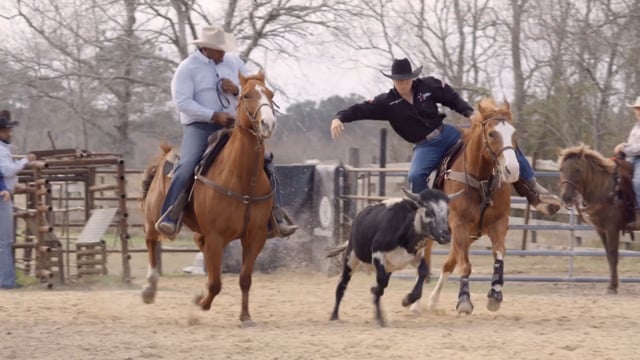 Darrell Petry is a Black cowboy from Cheek, TX. After a successful career as a bulldogger, an injury propelled him into new roles as a hazer, educator, and full-time father. As he’s aged, he’s gained wisdom on using and caring for his body through an intuitive understanding of physics and physiology.